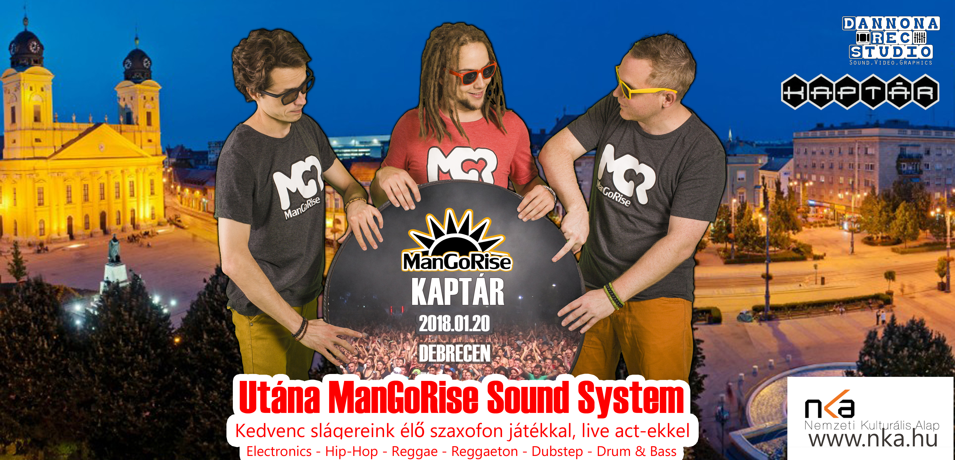 2025.01.25. | Szombathely További koncertek hamarosan... Koncertek voltak: 2024.11.17. | Örkény 2024.10.05. | Tatabánya 2024.09.22. | Zilah 2024.09.21. | Parajd 2024.08.23. | Székelykeresztúr 2024.08.18. | Balatonkenese 2024.08.10. | Halászi 2024.07.20. | Vác 2024.07.13. | Tiszafüred 2024.06.16. | Tatabánya 2024.06.01. | Budapest 2024.04.07. | Érd 2023.11.18. | Dunaszerdahely 2023.10.20. | Kaposvár 2023.10.08. | Sepsiszentgyörgy 2023.10.07. | Székelykeresztúr 2023.09.27. | Budapest, A38 Tetőterasz 2023.08.20. | Barcs 2023.08.18. | Hajdúböszörmény 2023.08.13. | Pápa 2023.08.12. | Bakonyszentlászló 2023.08.04. | Csíkszereda 2023.07.15. | Balatonfűzfő 2023.07.08. | Vaja 2023.07.01. | Mezőnyárád 2023.06.23. | Szigetszentmiklós 2023.06.17. | Zalaegerszeg 2023.05.19. | Nagykanizsa 2023.05.12. | Budapest, Westend Tetőkert 2023.04.30. | Berente 2023.04.22. | Celldömölk 2022.09.09. | Zalaegerszeg 2022.08.25. | Szeged, SZIN 2022.08.20. | Balatonföldvár 2022.08.13. | Tass (20:00) 2022.08.13. | Tiszaföldvár ( 15:30) 2022.07.31. | Vonyarcvashegy 2022.07.29. | Esztergom, MCC Feszt 2022.07.16. | Nádudvar 2022.07.09. | Marcali 2022.07.08. | Fortyogófürdő, Empty Fesztivál 2022.06.24. | Alsónémedi 2022.06.12. | Kispest 2022.05.08. | Budafok 2022.05.01. | Berettyóújfalu, Nyárváró Majális 2022.03 26. | Mezőkeresztes 2021.09.30. | Veszprémi Egyetemi Napok, Veszprém 2021.08.28. | Keszü 2021.08.22. | Boglári Szüreti Fesztivál, Balatonboglár 2021.08.13. | LAJTA PARTY 7vége, Mosonmagyaróvár 2021.07.07. | Tisza-tavi Napok, Tiszafüred 2020.09.05. | Berekfürdő 2020.08.22. | Balmazújvárosi Napok, Balmazújváros 2020.07.24. | XXVII. Vonyarci Boros Forgatag, Vonyarcvashegy 2019.09.28. | Magyaralmás 2019.09.14. | II. Falvai autós-motoros találkozó, Rákóczifalva 2019.09.13. | Szigetköz ízei, Vármegye borai Fesztivál, Mosonmagyaróvár 2019.09.07. | Színes, Ízes Bogyiszlói Paprikanap, Bogyiszló 2019.08.31. | Tiszavégi Nap, Tiszafüred 2019.07.26. | East Fest, Mezőtúr 2019.07.20. | Bakonypéterd 2019.07.14. | Tiszafüredi Halasnapok 2019, Tiszafüred 2019.07.11. | XIII. Palacsintafesztivál és Falunapok, Derekegyház 2019.06.15. | Zenés Nyári Találkozások, Oroszlány 2019.05.01. | 2019 HUSH!! Full Music, Makaó (MO) 2019.03.21. | JATE Klub, Szeged 2019.01.11. | ELLÁTÓház, Budapest 2018.09.13. | IH Rendezvényközpont, Szeged 2018.08.31. | ELLÁTÓház, Budapest 2018.08.24. | STRAND Fesztivál 2018, Zamárdi 2018.08.18. | Balatonfüredi Borhetek 2018, Balatonfüred 2018.06.27. | Telekom VOLT Fesztivál 2018, Sopron 2018.05.11. | ELLÁTÓház, Budapest 2018.02.10. | Végállomás Klub, Szombathely 2018.01.20. | Kaptár, Debrecen 2017.10.04. | Debreceni Egyetem - MK Sörsátor 2017, Debrecen 2017.09.21. | IH Rendezvényközpont, Szeged 2017.09.09. | Retro Jazz Klub, Tiszafüred 2017.08.05. | XV. Nagylóki Napok, Nagylók 2017.07.26. | East Fest, Mezőtúr 2017.07.22. | Nánák napja, Tiszanána 2017.07.08. | Halas Napok, Tiszafüred 2017.07.01. | Görhe-nap, Mezőszemere 2017.05.11. | Budafoki Szomszédok Piaca, Budapest 2017.04.15. | YUK BP, Budapest 2017.02.18. | Kaptár, Debrecen 2016.11.11. | ShowBarlang, Budapest 2016.10.28. | PÁIG Diáknap, Eger 2016.09.17. | X. Őszi Vigadalom, Tiszaigar 2016.09.10. | Nyáregyháza Fesztivál, Nyáregyháza 2016.09.03. | Arena V4 Sörfesztivál, Budapest 2016.07.30. | East Fest, Mezőtúr 2016.07.09. | Halfeszt, Tiszafüred 2016.07.02. | Falunap, Mezőszemere 2016.05.28. | Körlet Terasz, Budapest 2016.03.18. | Körlet Terasz, Budapest 2015.12.31. | Szilveszter a ManGoRise-zal! (Körlet Terasz, Budapest) 2015.11.27. | Körlet Terasz, Budapest 2015.10.10. | Belvárosi Ősz, Tiszafüred 2015.10.03. | Körlet Terasz, Budapest 2015.08.30. | Miutcank.hu Piknik, Budapest 2015.07.18. | Sörfesztivál, Alsóörs 2015.07.10. | Halasfeszt, Tiszafüred 2015.06.10. | Tilos Rádió Adomány Est, Budapest 2015.06.07. | Miutcank.hu Piknik 2, Budapest 2015.04.26. | Miutcank.hu Piknik, Budapest 2015.04.25. | Fiatalok Napja, Ajka 2015.04.16. | NymE AK Hallgatói Napok 2015, Győr 2014.11.22. | Közgáz Gólyabál, Budapest |